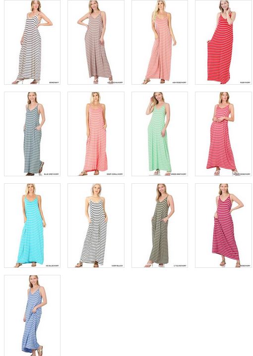 Order yourself one of our popular stripped Maxi dresses. They are comfortable come in all sizes and perfect for all types of weather.